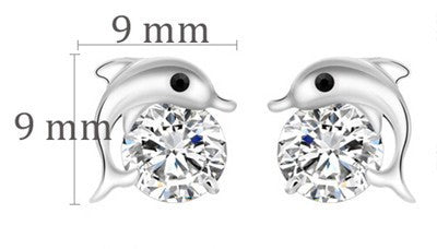 Silver Plated Rhinestone Dolphin Charm Stud Earrings
