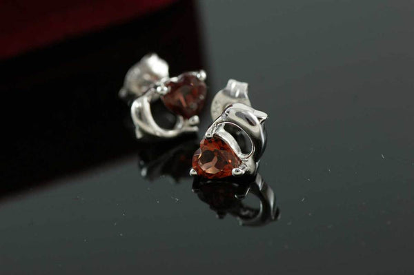 Earring Type: Stud EarringsBack Finding: ButterflyMain Stone: GarnetStyle: ClassicMetals Type: Silver Plated Main Stone: GarnetColor: VVS, RedShape: HeartMaterial: Gemstone