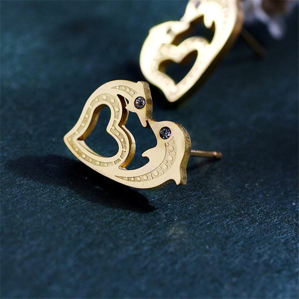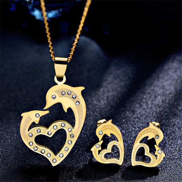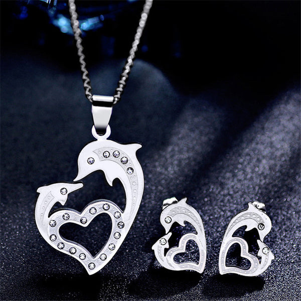 Elegant Dolphin Heart Necklace and Earrings Dolphin Jewelry Set