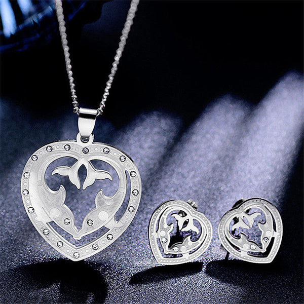 Elegant Double Dolphins Cubic Zircon Jewelry Set