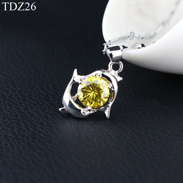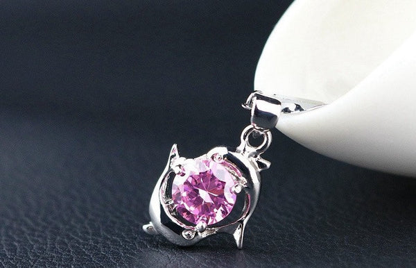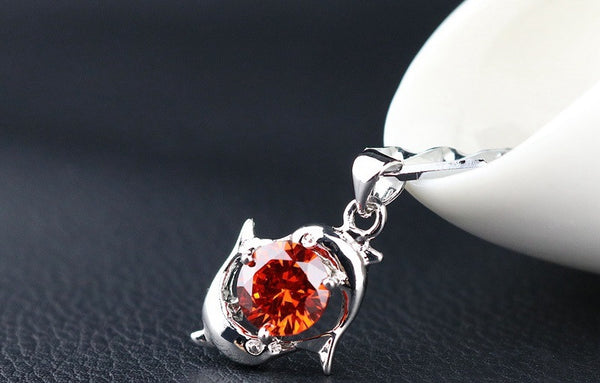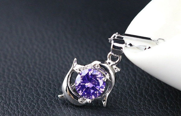 Beautiful Zircon Double Dolphin Necklace and Pendant
