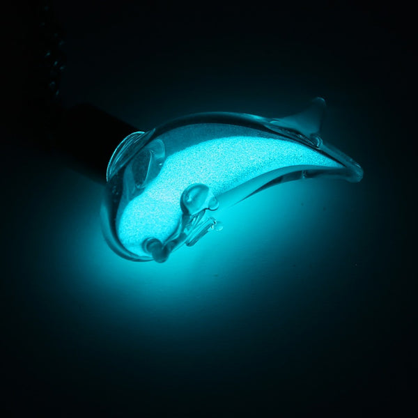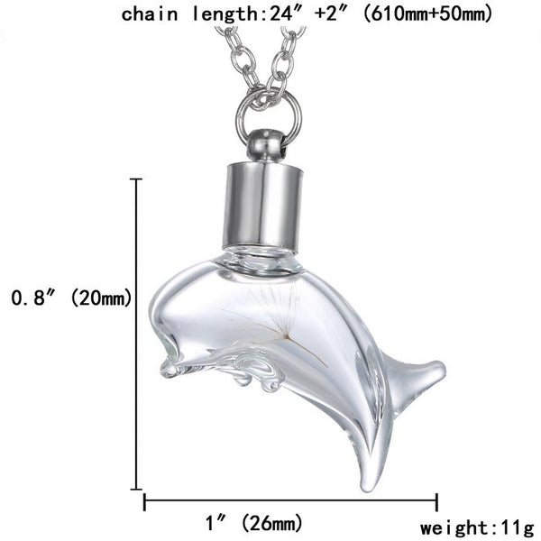 Glass Wishing bottle Dolphin Pendant Necklace - Choose from Dandelion or Glowing