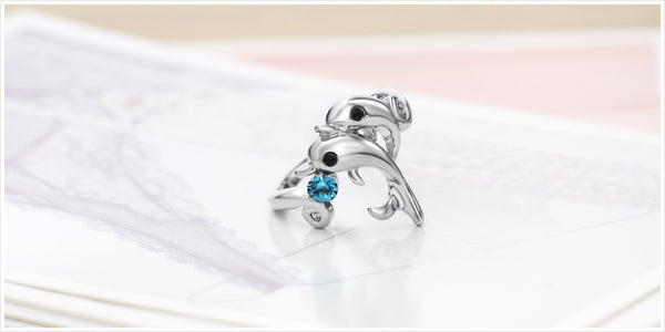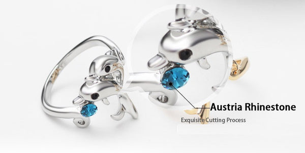 Silver Plated Austrian Rhinestone Dolphin Ring