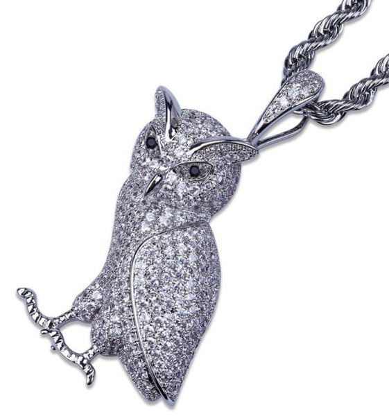 Key: Micro Pave Cubic Zircon Owl Pendant Necklace