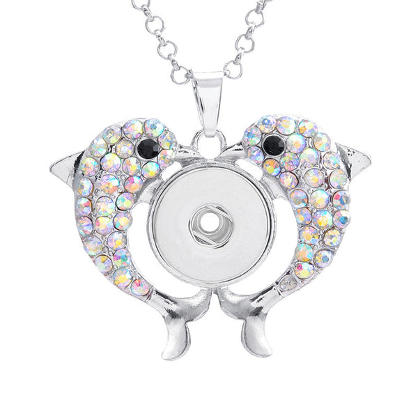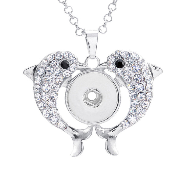 Crystal Snap Button Rhinestone Double Dolphin Pendant