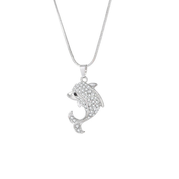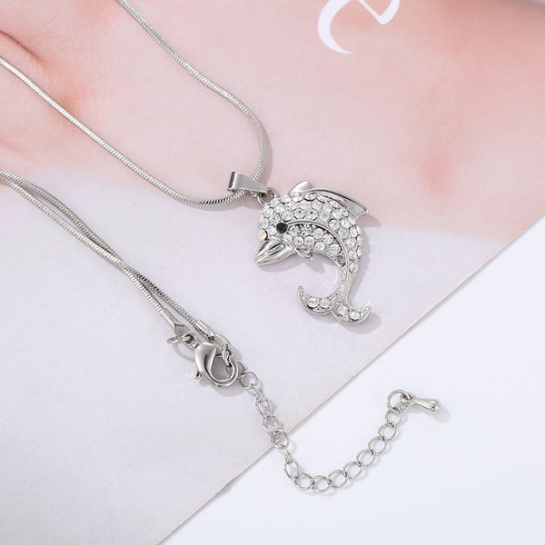 Elegant Rhinestone Crystal Filled Dolphin Necklace & Pendant